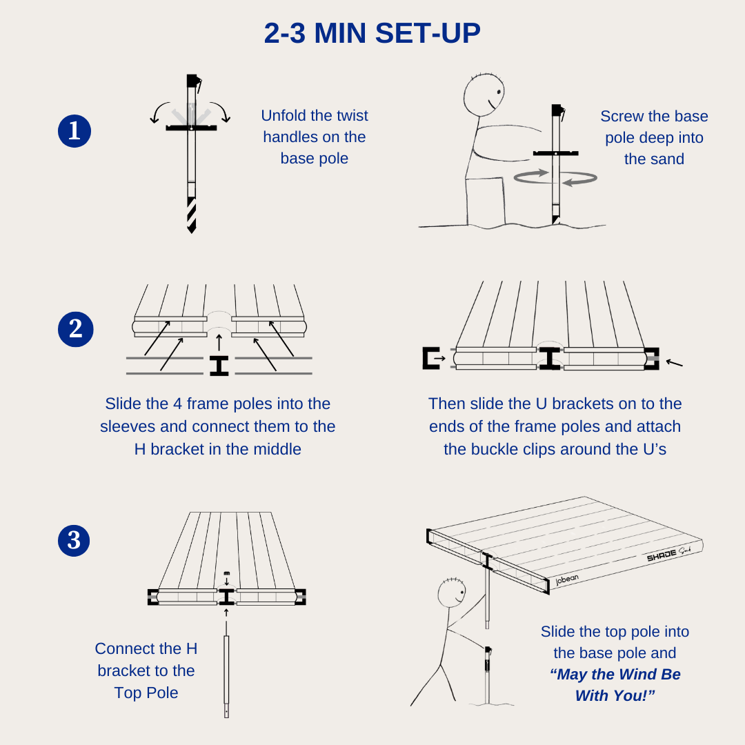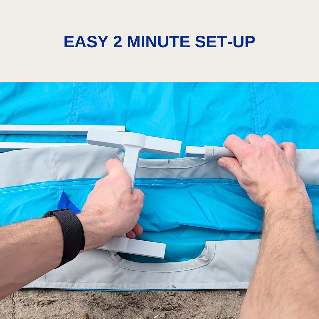 Experience a noiseless, hassle-free beach day with ultimate sun protection.