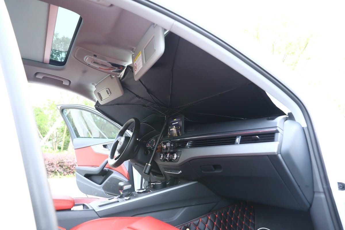 Effortlessly keep your car cool and protect its interior from sun damage with a foldable sunshade.